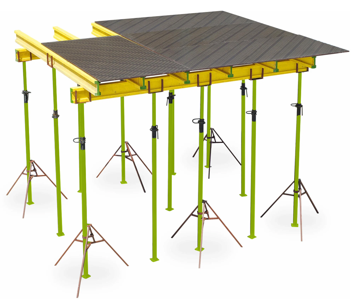 Простые и доступные варианты опалубки для перекрытий на телескопических стойках являются наиболее распространенными, так как они имеют ряд преимуществ. При этом требуется всего несколько человек для проведения монтажных и демонтажных работ, а процесс этот имеет минимальное время, так как в его составе нет большого количества деталей. С помощью этой конструкции возможно возвести перекрытия любой формы и размера, а также наклонные и горизонтальные поверхности. Опалубка может быть установлена на наклонных и ступенчатых поверхностях.