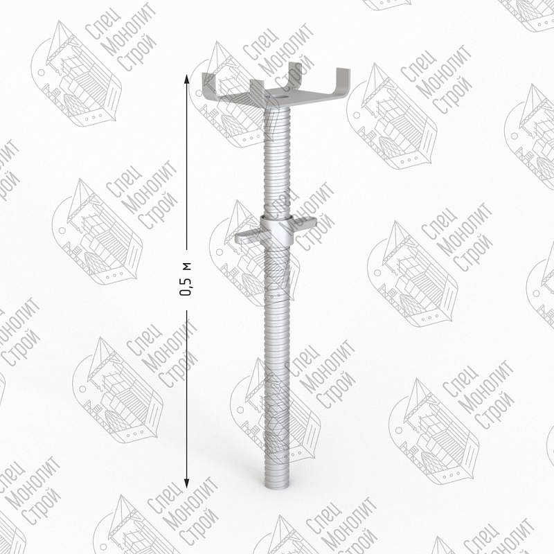 Вал верхний регулировочный с унивилкой 500 мм. удобен совмещением в себе системы верхнего домкрата и унивилки. Устанавливается верхним элементом вверх, в который укладывается брус или балка, на которой находится фанера.