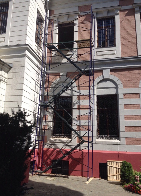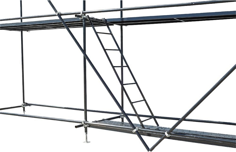 В рамных строительных лесах для подъема на верхние уровни используются рамы с лестницами, место установки которых нужно продумывать уже при сборке конструкции. Для всех остальных типов строительных лесов используются навесные лестницы, позволяющие произвести установку в любом месте даже после сборки конструкции. По необходимости мы можем изготовить лестницы трапы как с поручнями, так и без них. Данные навесные лестницы можно использовать и при монтаже рамных лесов для установки лестниц внутри собранное конструкции.