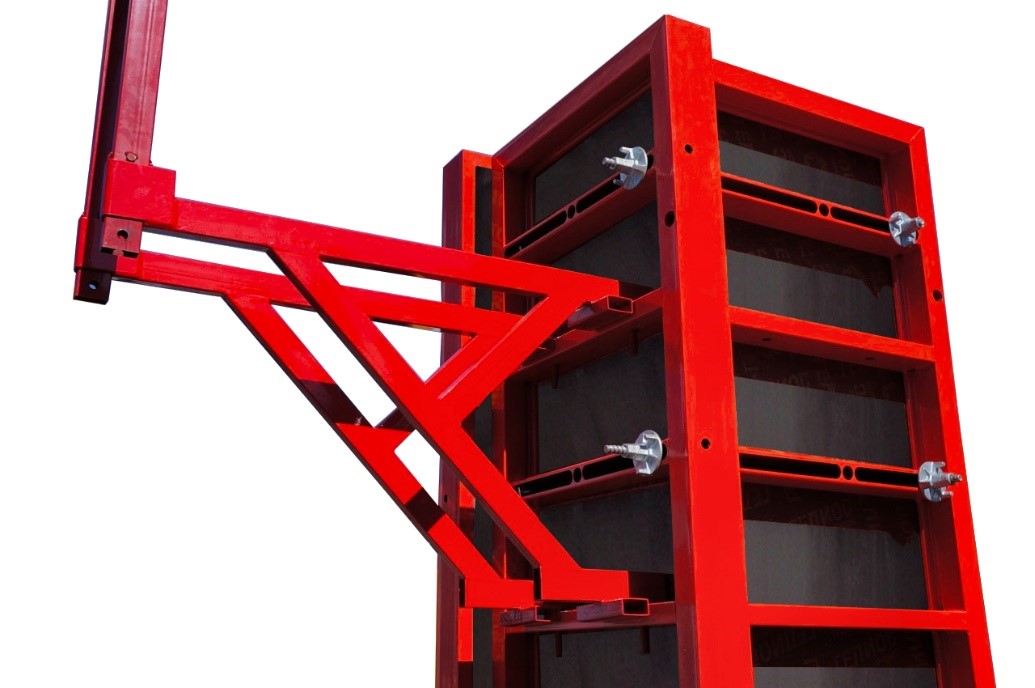 Универсальность и совместимость: Кронштейн разработан для интеграции с различными системами щитовой опалубки (как стальной, так и алюминиевой), что делает его гибким решением для любой стройплощадки.