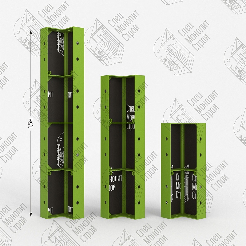 Угловые щиты опалубки изготавливаются специально для организации внутренней угловой части стеновой поверхности. Применяются одновременно с внешним щитом. Также их используют при формировании ответвления.