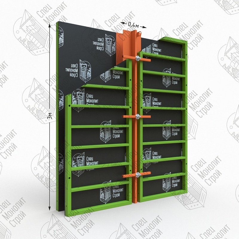 Ответ: Благодаря стандартной схеме отверстий, щит совместим с большинством рамных опалубок (таких как "Альфа", "Гамма", Мекос, ПСК и их аналоги). Для точной стыковки используйте штатный крепеж (пальцы и клинья).