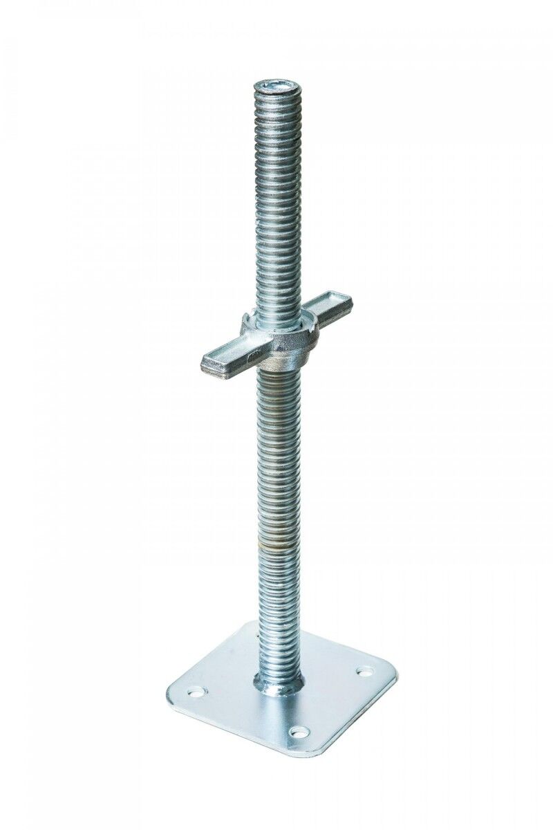 При монтаже рамных лесов на участках с уклоном, перепадами высот, асфальте или рыхлом грунте без винтовой пяты не обойтись. Она позволяет выставить строгий горизонт нижнего яруса, равномерно распределяя нагрузку на основание и предотвращая опрокидывание.