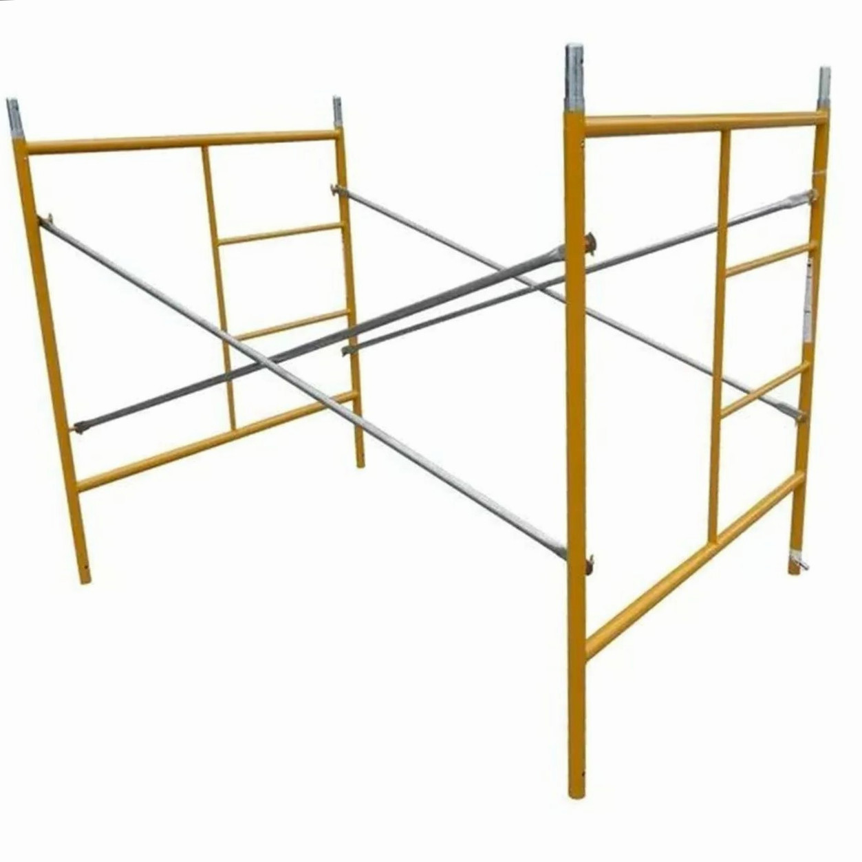 Ответ: Основное различие — в функциональности. Проходная рама (вес 6,6 кг) служит только для создания каркаса и обеспечения рабочего пространства. Рама с лестницей (вес 8,2 кг) имеет встроенные ступени и предназначена для организации безопасного перемещения рабочих между ярусами внутри самих лесов.