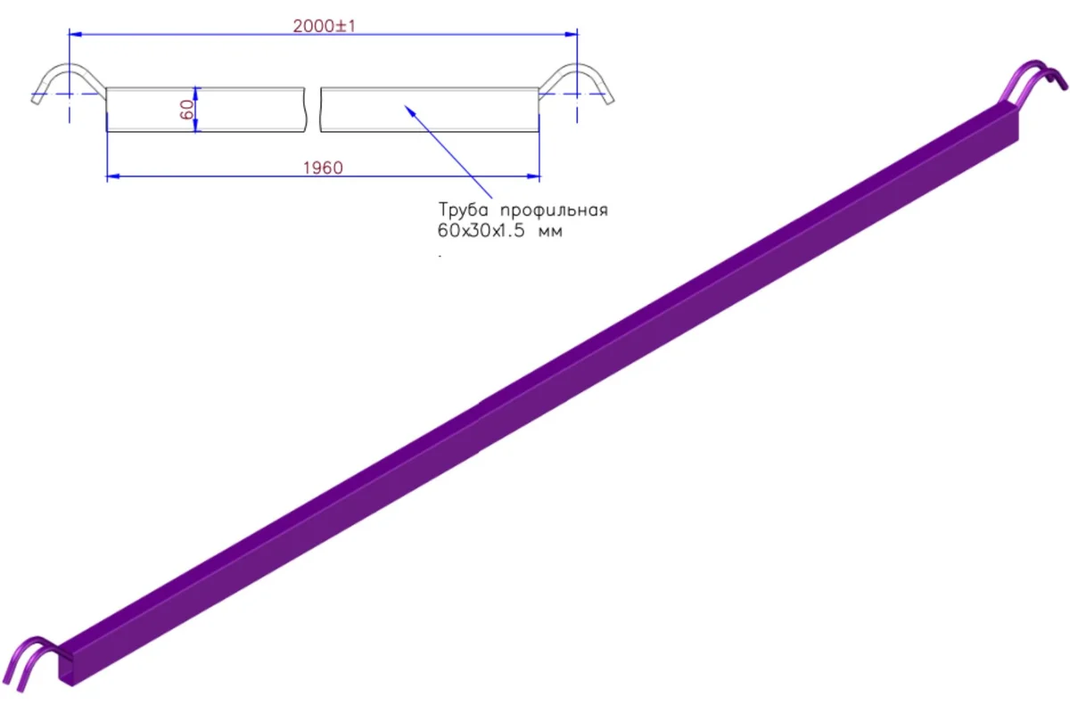- Надёжность крепления: На концах каждой балки приварены усиленные крюковые зацепы, которые обеспечивают жёсткое и быстрое соединение с рамами, исключая самопроизвольное смещение.
