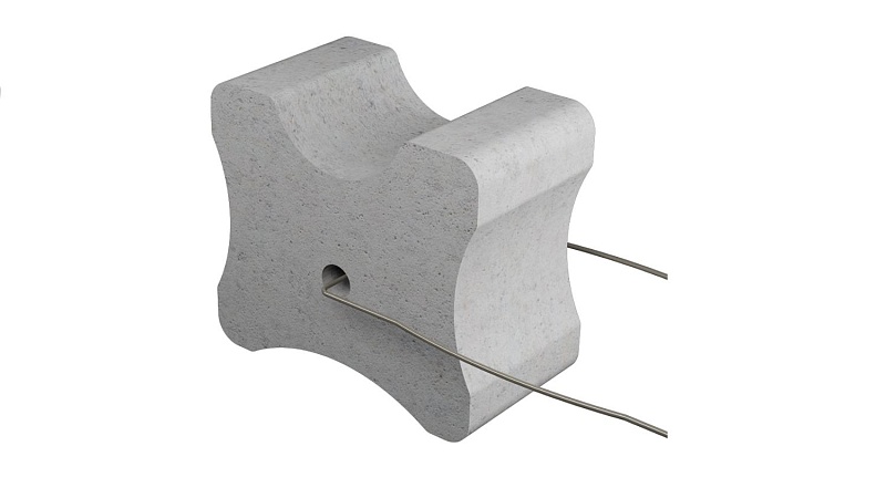 - Высокая прочность: изготовлен из бетона класса В45. Выдерживает нагрузку до 1500 кг на один фиксатор. Не деформируется под весом арматурного каркаса и при заливке бетонной смеси.